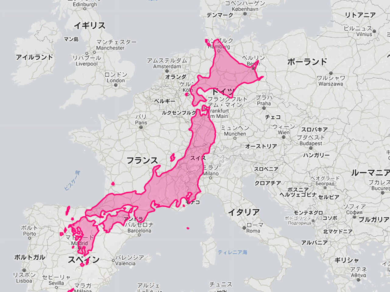 実際に、ヨーロッパに同じ尺度で日本をもって行くと、何カ国にも渡っている強大な島国です。